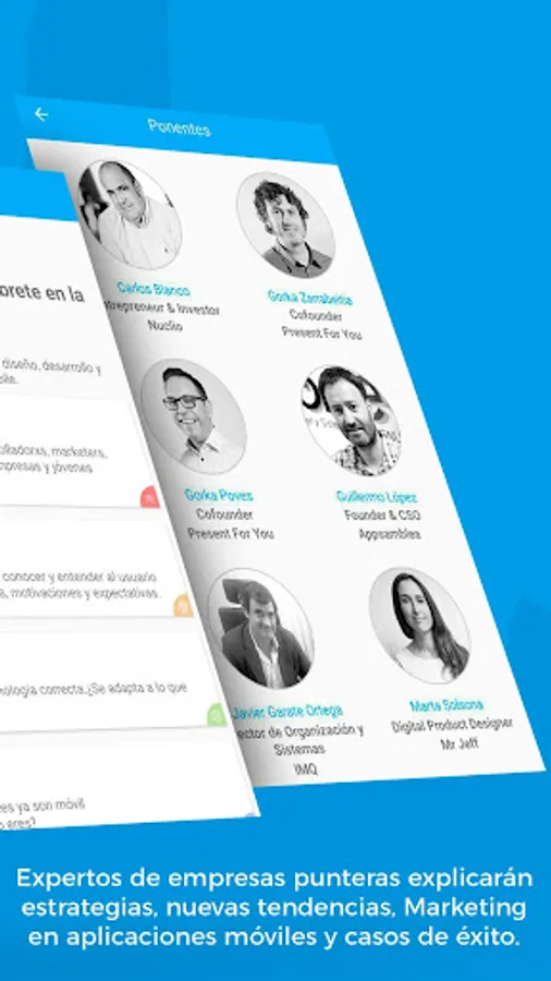 An intense day where you can meet with different professionals and leading companies of the phases for the construction and placing on the market of mobile solutions. In addition to being able to know cases of success of companies that have adopted developments in mobility to improve different business processes.