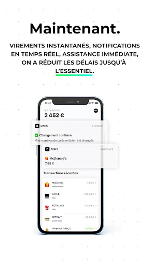 No need to wait 48 hours before knowing if you have enough left to buy that pair of shoes or those Airpods. You are notified after each movement on your account and you know what you have left in your wallet in real time.
