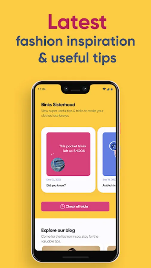 Tired of looking for the perfect fit? Say hello to the smoothest way to get clothes tailor-made. Download Binks, India’s first ever Personal Fashion app.