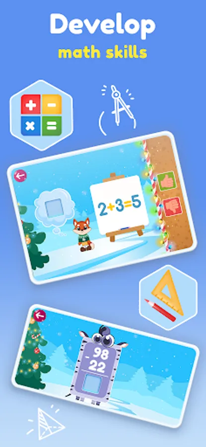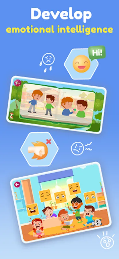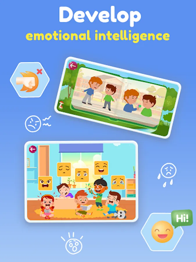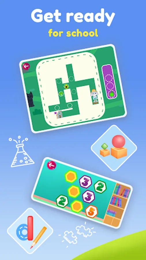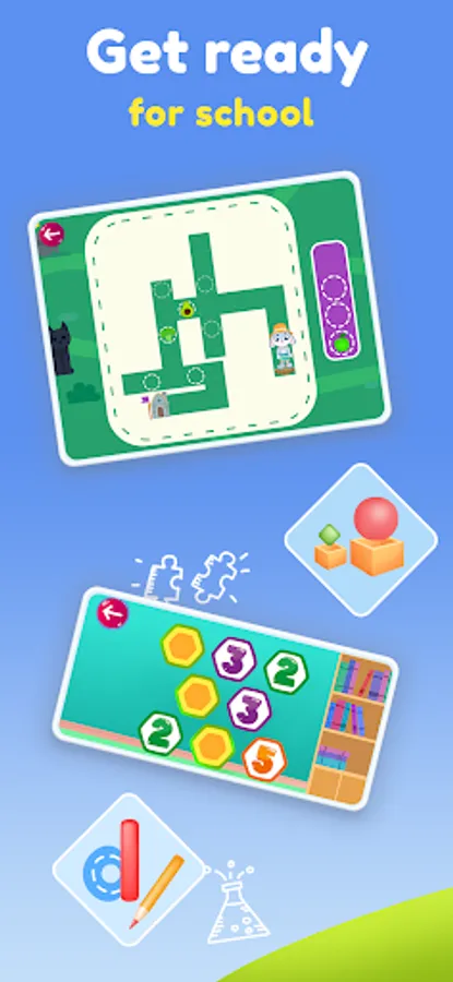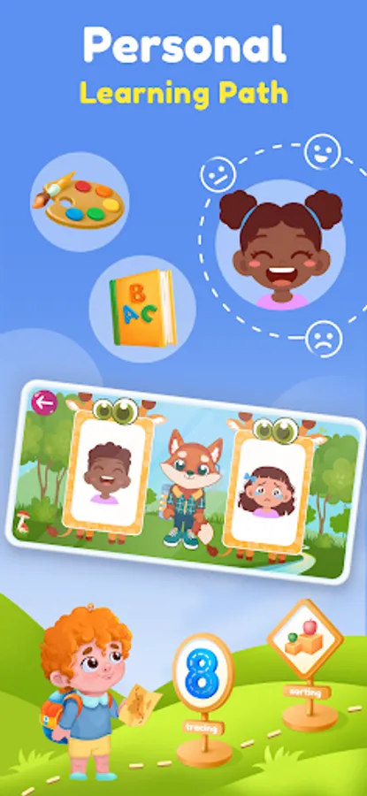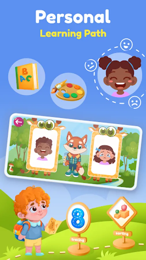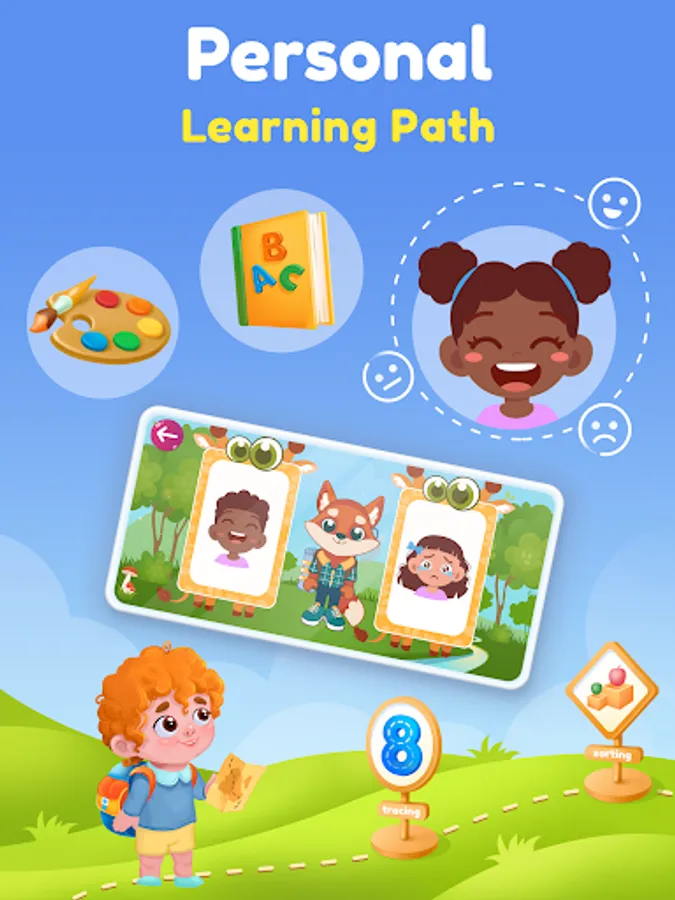 Pre-k preschool learning games create an individual education program according to age, gender, interests of your child. This kids activity is aimed at developing cognitive abilities, emotional intelligence, social skills, improving attention, memory, logic, imagination, communication skills, expanding the worldview.