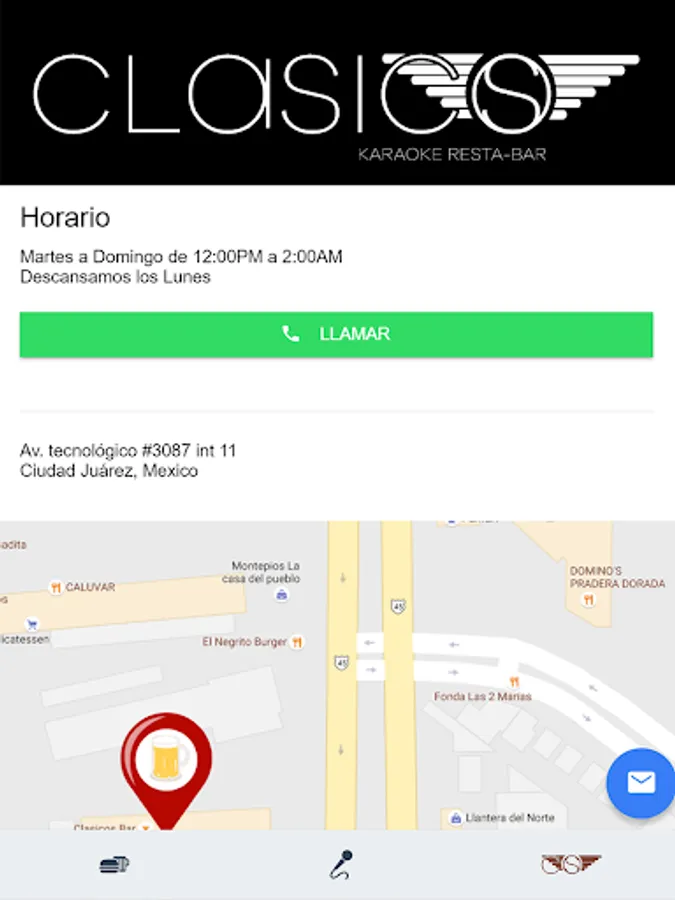 App for customers of El Clasicos, Restaurant Bar & Karaoke.