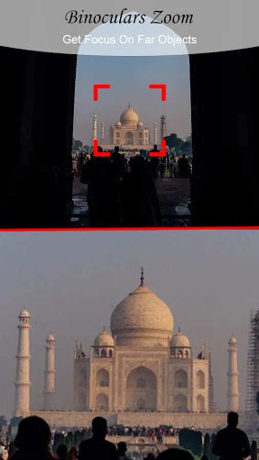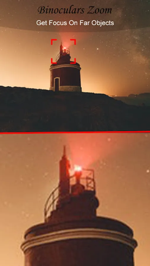 To zoom objects with high resolution the app will provide all the cool features you need for a clear viewing. There is no need to carry a big binocular with you anymore. See objects, read small text & find things in dark with the binocular app for android.