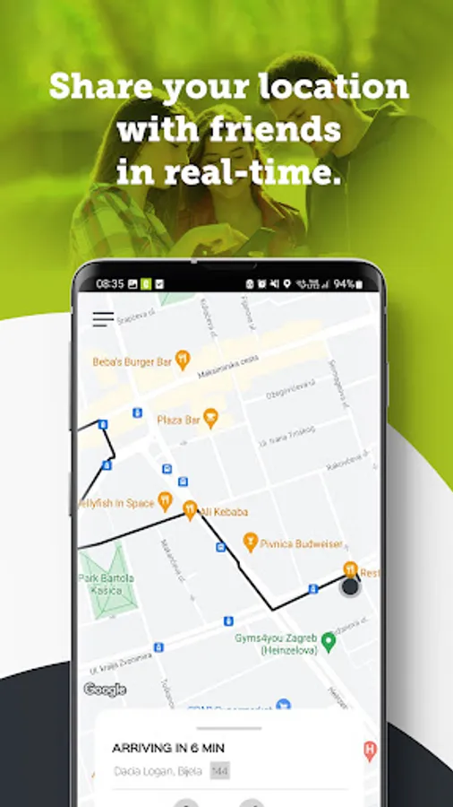 • Don’t explain where you are - share your location with friends in real-time and let them track you!