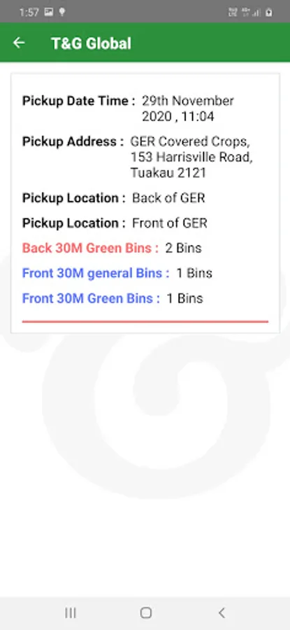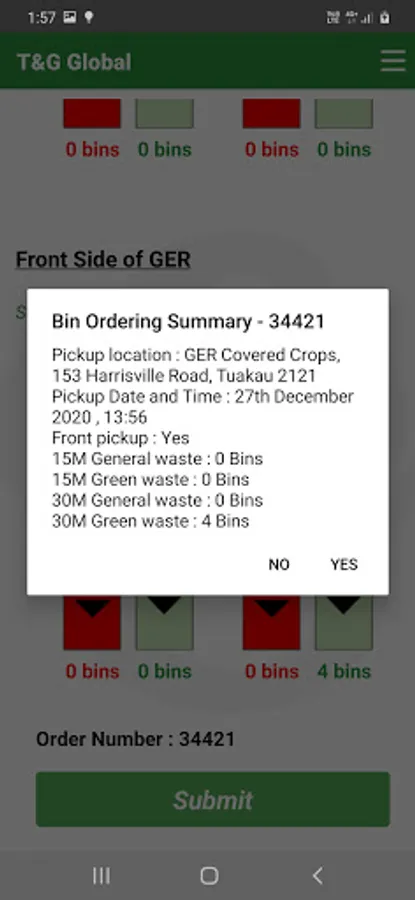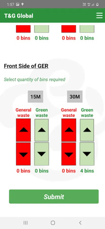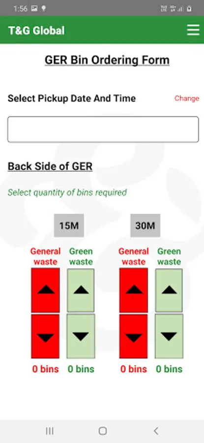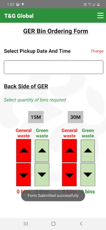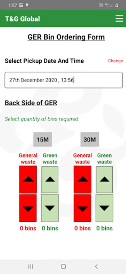 This app is only for the GER site, where the user can order bins through the application easily and at the backend, an e-mail is sent to the council with the order number and pick up date-time.