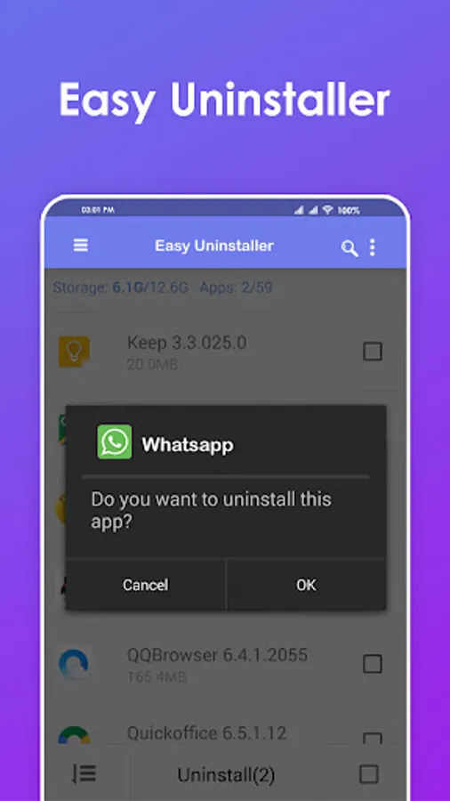 An android phone removal tool called Easy Uninstaller is available. It is quite simple to use; simply choose the apps you wish to remove from your system and click the "Uninstall Selected Apps" button. To find the application you want to delete, enter a term in the textbox at the top. For a variety of sort options, select "Menu" > "Sort" to sort the applications.