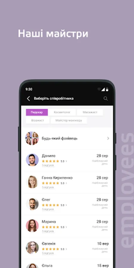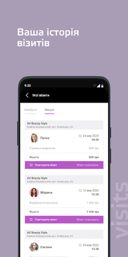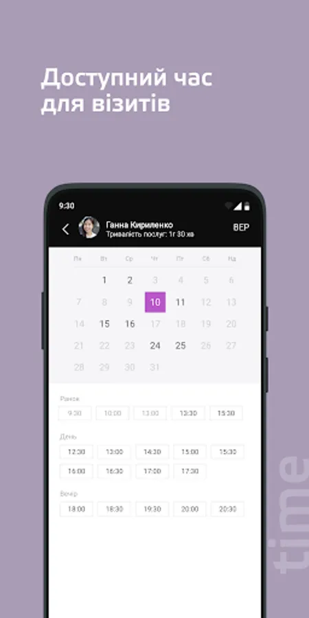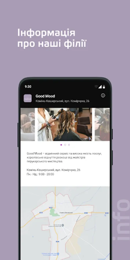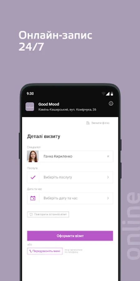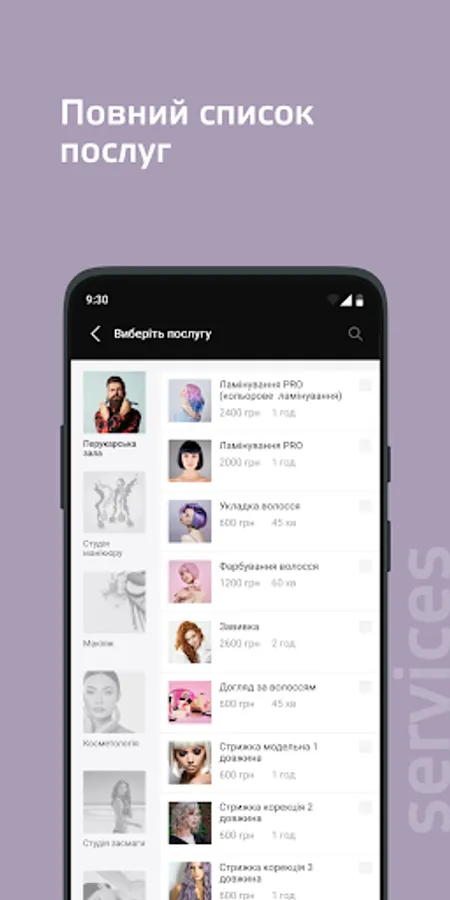 In the application, you can sign up for any service, get acquainted with the work schedule and the cost of services.