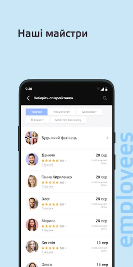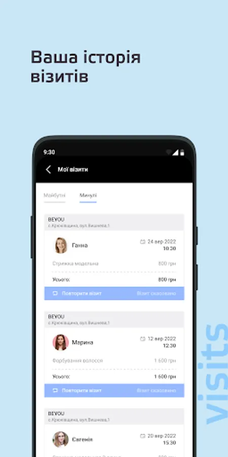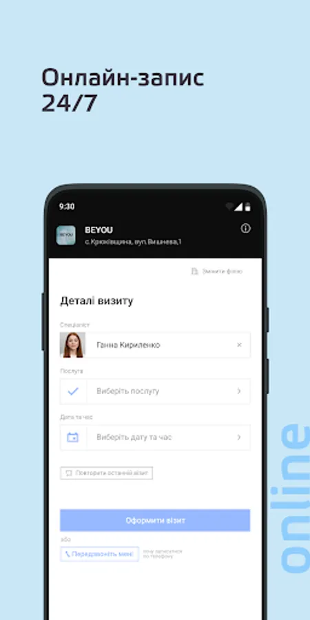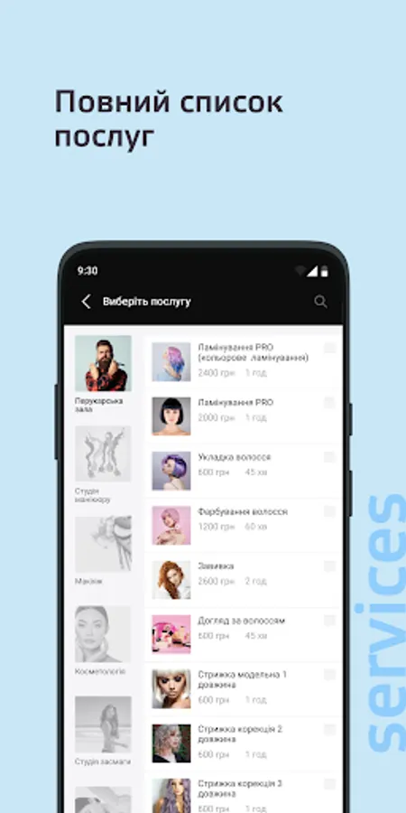 In the application, you can sign up for any service, get acquainted with the work schedule and the cost of services.
