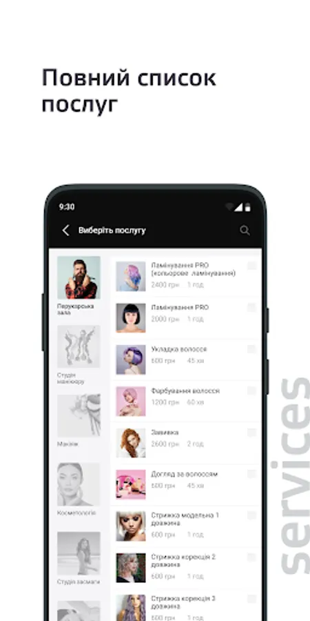 In the application, you can sign up for any service, get acquainted with the work schedule and the cost of services. We will be grateful for the feedback.