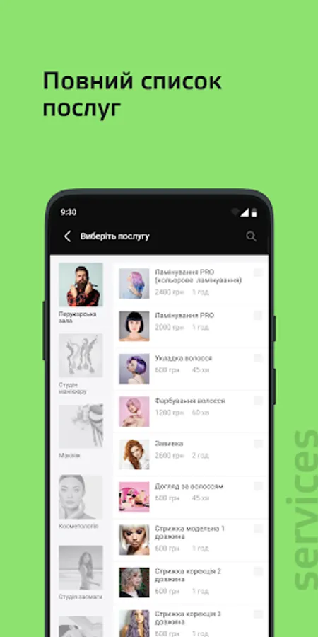 In the application, you can sign up for any service, get acquainted with the cost of services.