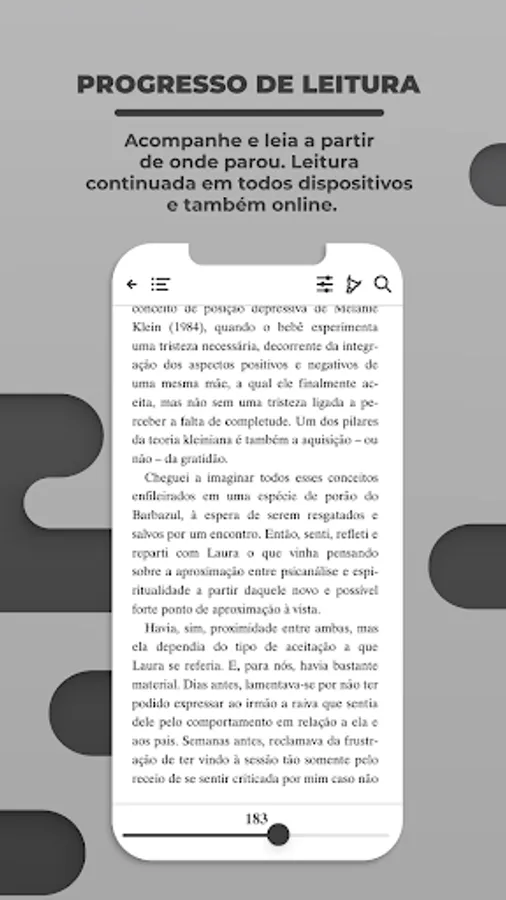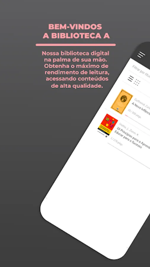 Este é o aplicativo de leitura de ebooks da Plataforma A (+A Educação). Nossa biblioteca digital reúne os selos editoriais: Artmed, Artes Médicas, Bookman, Penso e SAGAH. Professores, alunos e colaboradores poderão ter acesso rápido, onde e quando precisarem. São mais de 2700 títulos disponíveis, em diversas as áreas do conhecimento, desenvolvidos por grandes autores nacionais e estrangeiros. Leia nossos conteúdos utilizando as ferramentas de apoio da solução, como: buscas por palavras-chave, criação de destaques e notas, favoritos, ajustes de texto (tipografia, tamanho, entrelinhas e alinhamento), entre outros recursos.