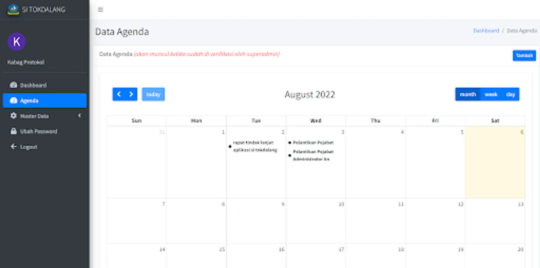 Application of the Agenda / Scheduling of the Protocol and Communication Section of the Bintan Regency Leader