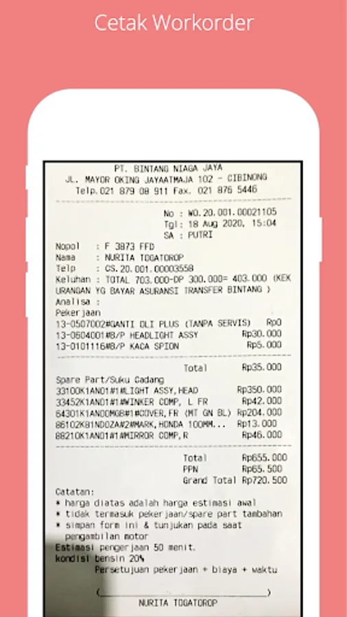 The Bintang H2 Mobile Staging application is a training application to create work orders through an Android device that is integrated with PT Bintang Niaga Jaya's ERP (Bintang Motor Group)