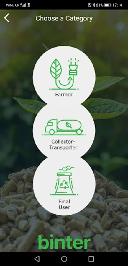 binter (Biomass INTERmediates) is an interactive platform for mobilizing biomass resources. A smart phone application tool where farmers declare their available biomass by automatically uploading it in a database, collectors/transporters then organize the logistics towards collection of the desired biomass types and finally end users declare their preferences.