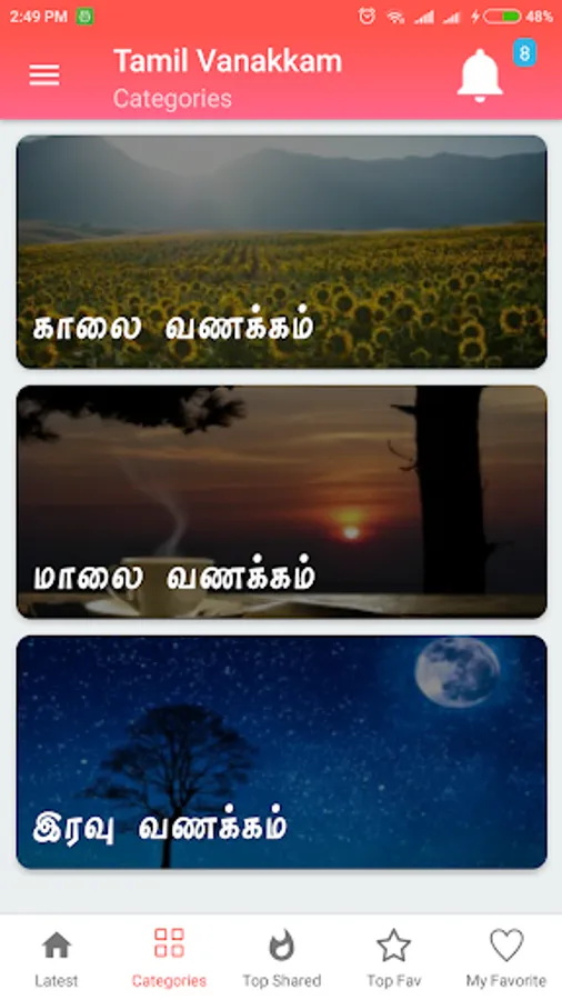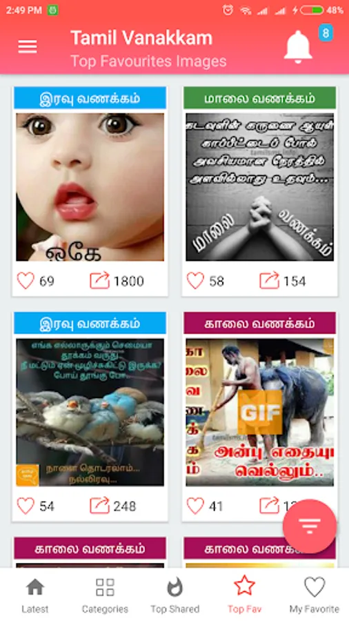 App filled with Good Morning, Good Evening and Good Night images and GIF in Tamil