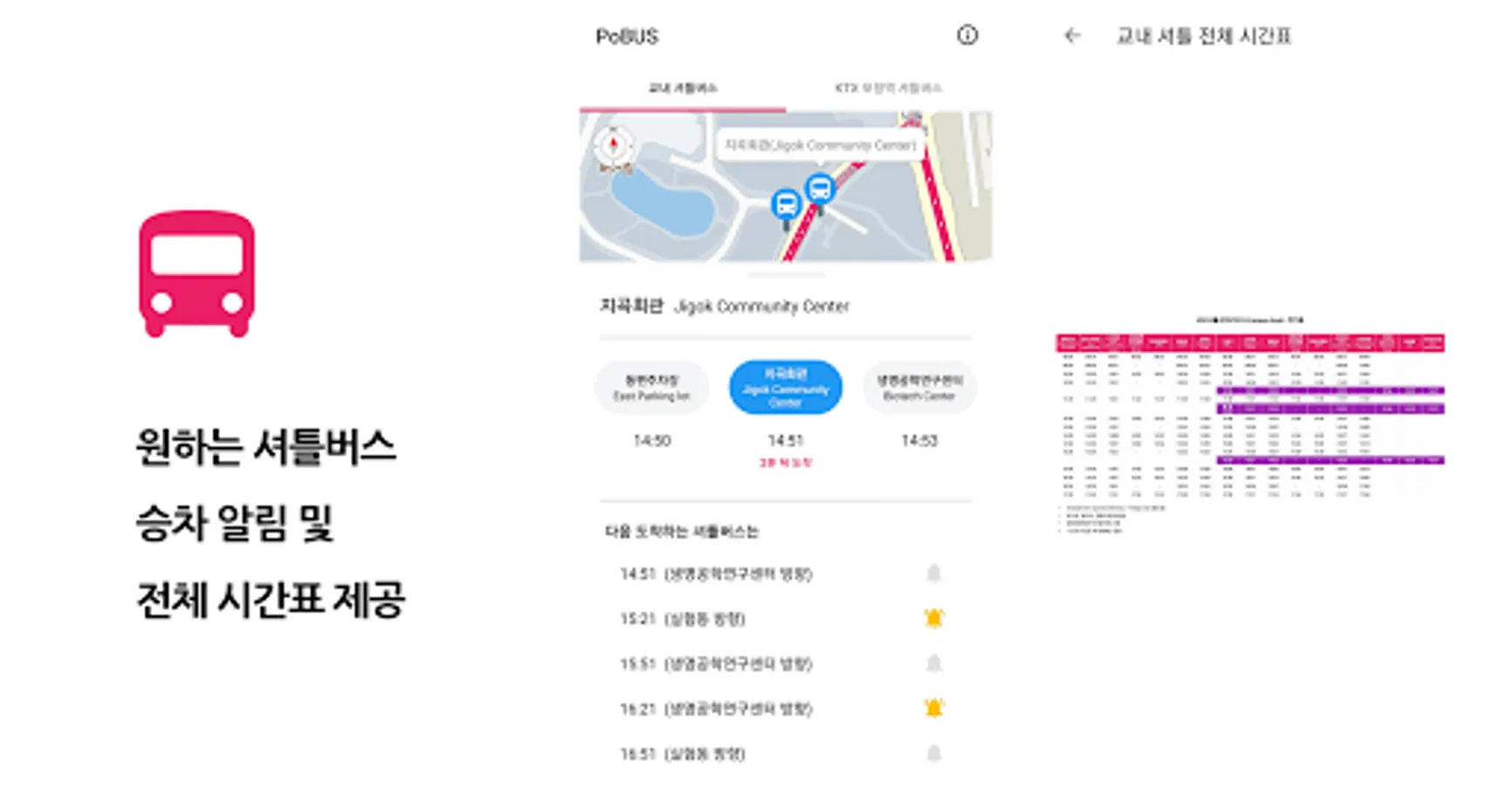 You can easily check the location and time of the school shuttle bus stop on the map and set the boarding reminder!
