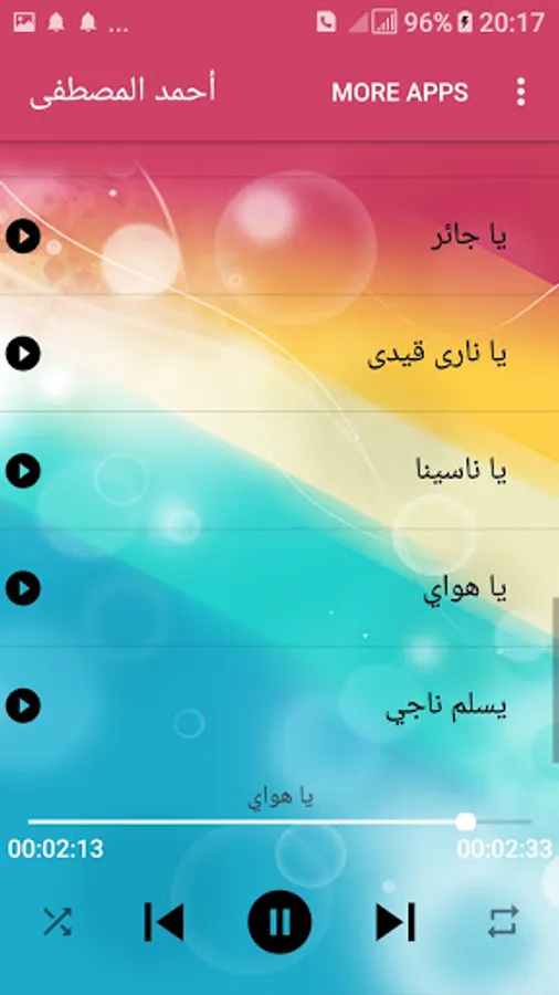 Ahmed Al-Mustafa enjoys our listening with wonderful Sudanese songs presented to you in the Ahmed Al-Mustafa songs application, working with the background and without the Internet, the Dabkat Ahmed Al-Mustafa application without the net contains all Ahmed Al-Mustafa, enjoy it and do not forget to share it with your friends, lovers of Ahmed Al-Mustafa.