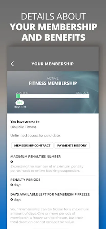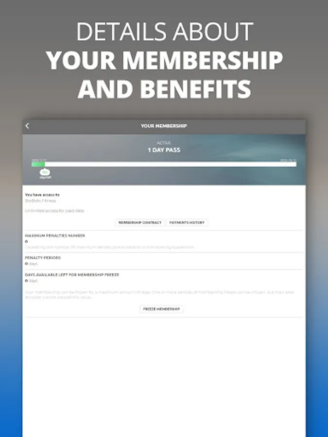 Details about your account - you can keep track of your membership, see how many days you have left, and its benefits