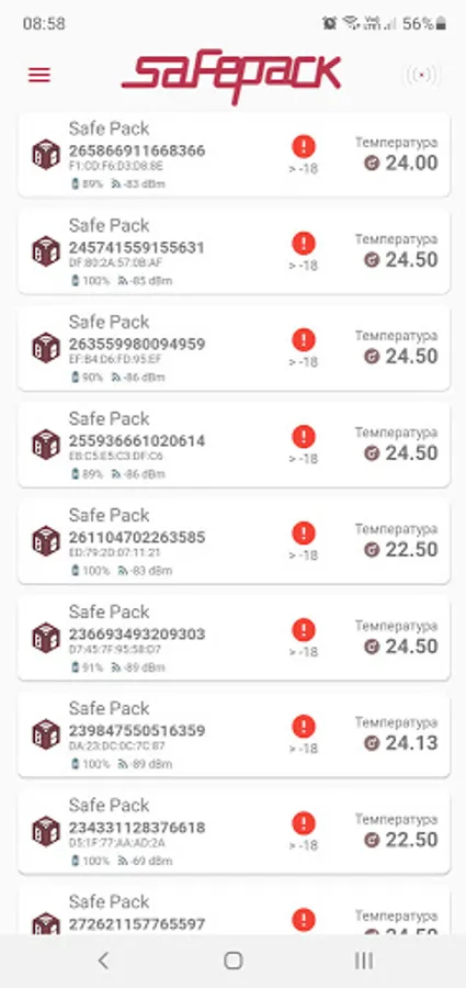 By means of the application, you can quickly receive information about the observance of the temperature regime of the transported cargo at any time.