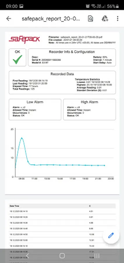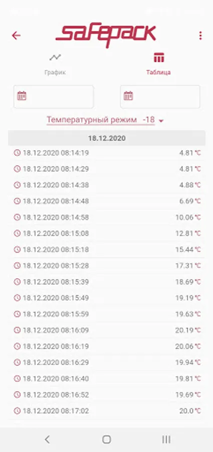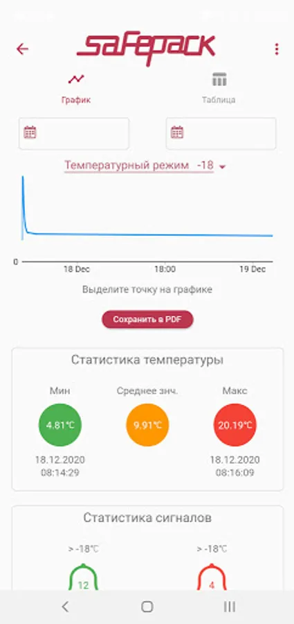 The application has a function "Generate and save a report" on the temperature regime of the cargo for the entire period of transportation.