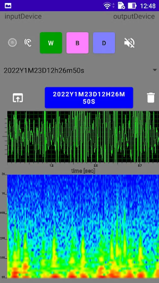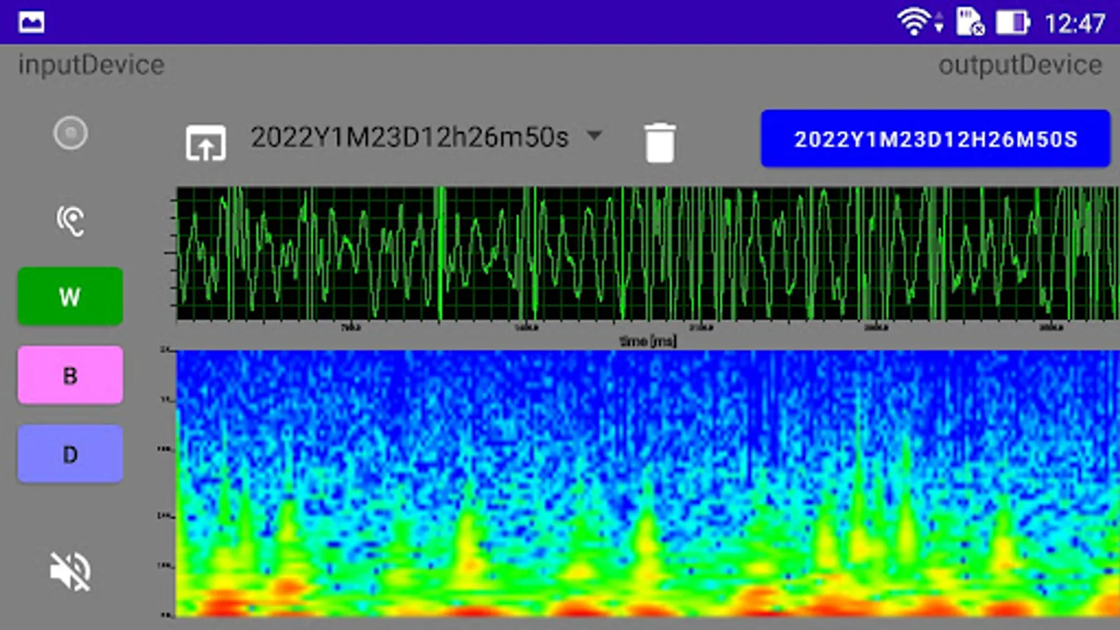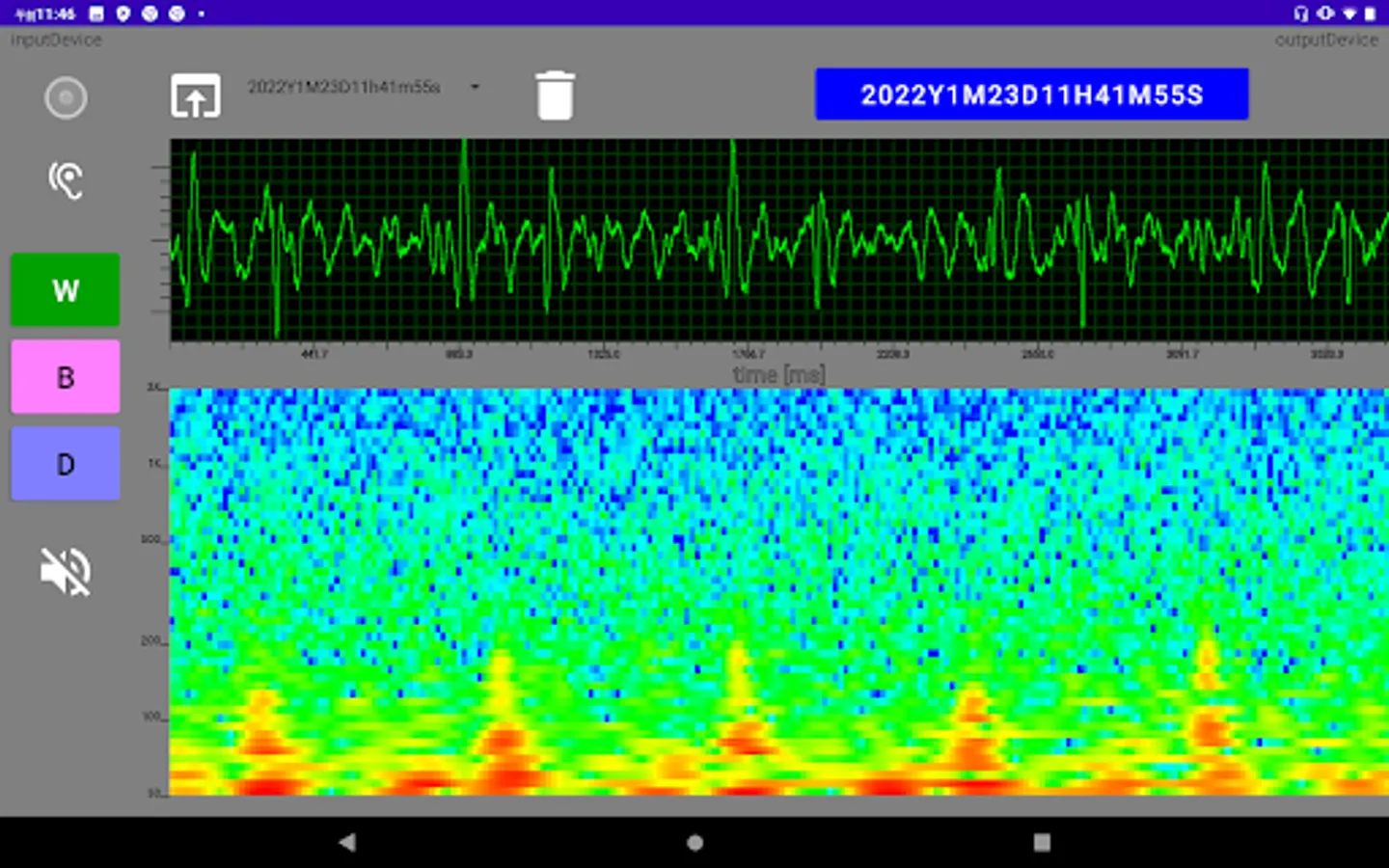 Sound data and scalogram image can be accessed by Files app, so they can be copied to USB memory, sent by email, and uploaded to cloud computing service.