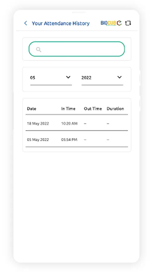 - Attendance includes “in-time” and “out-time”