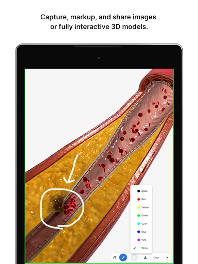 - 3D interaction tools to rotate, zoom, draw on, dissect and share models