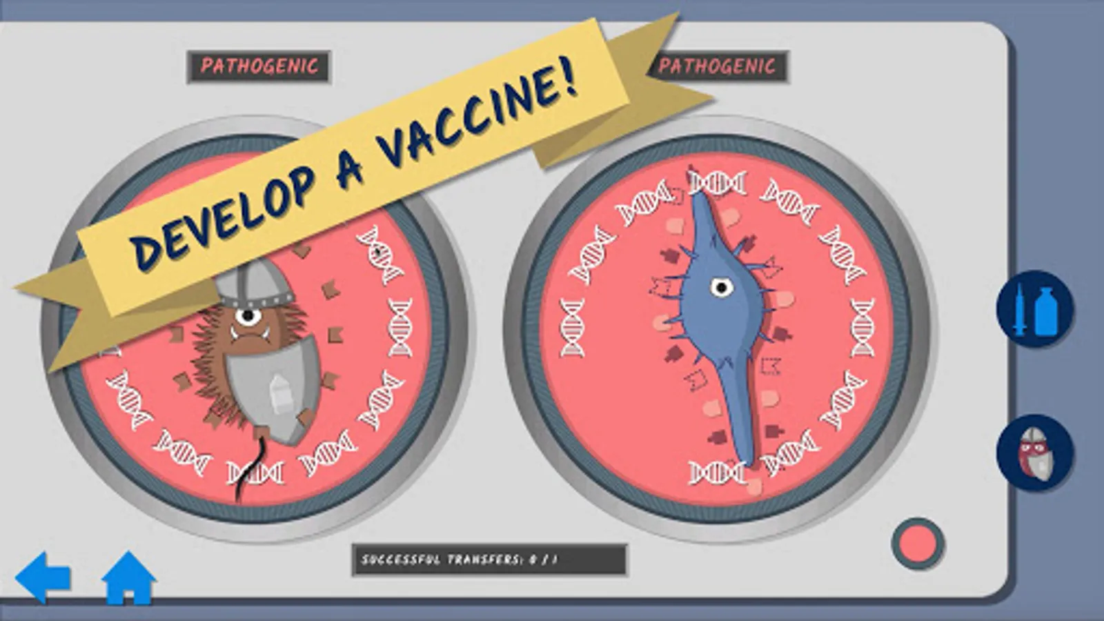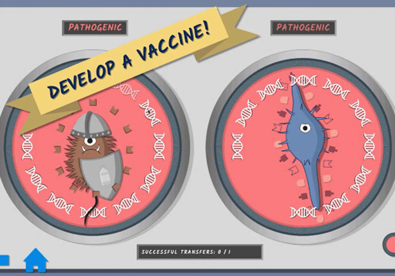 'Battle for Cattle' is a fun game where you learn everything about diseases, treatment, bacteria and viruses. In the game, the player is confronted with sick farm animals and the problem of antibiotics overuse. The player experiences an increase in antibiotic resistance and learns about the importance and principles of vaccines. The player has to save the lives of cows on a farm and take control over the design of a synthetic biology vaccine.