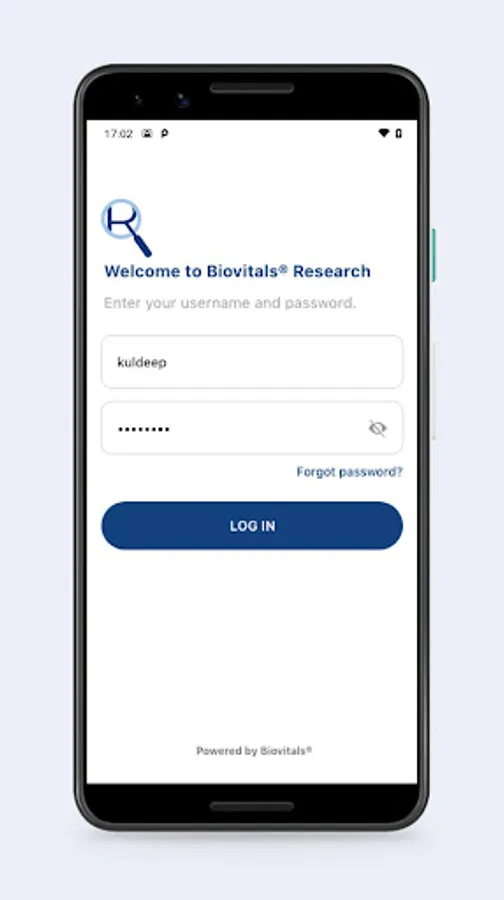 Biovitals® Research by Biofourmis enables active and passive data collection from participants of clinical trials and scientific studies. The intuitive user-interface facilitates easy compliance and promotes engagement. The Biovitals® Reasearch App is configured in accordance with the study protocol and requirements. Please contact your study team for login information.
