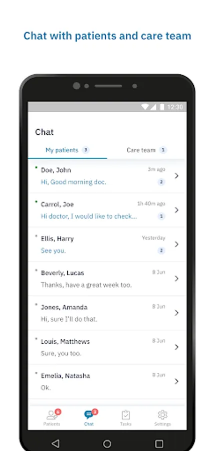 The Biofourmis Care@Home™ solution also provides a mobile application for healthcare providers to remotely monitor and coordinate care for patients which includes: