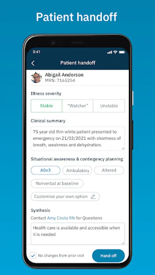 - Patient handoff