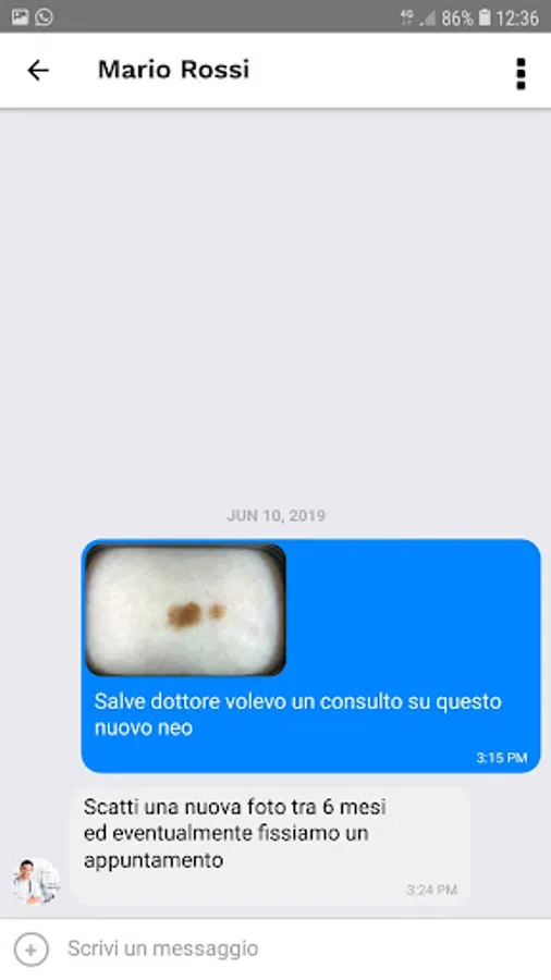 Through the application it is also possible to communicate with the doctors saved in your contact list and share documents and photographs with them.