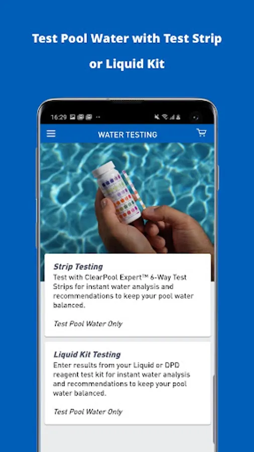 - Testing with ClearPool Expert™ 6-Way Test Strips