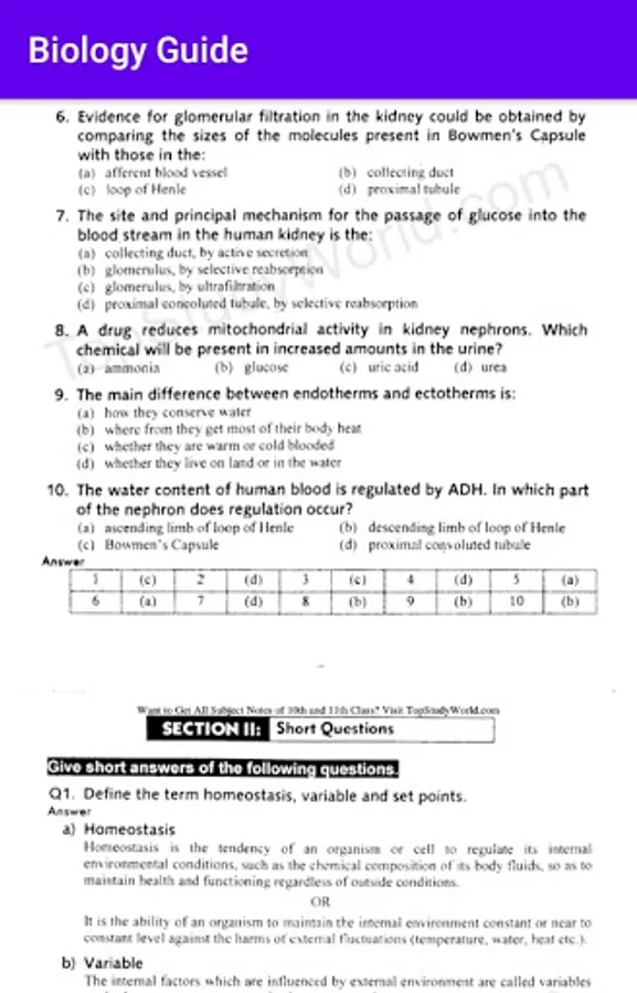 Biology Guide Class 12th English Medium Notes and Punjab Text Book PTB.