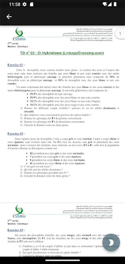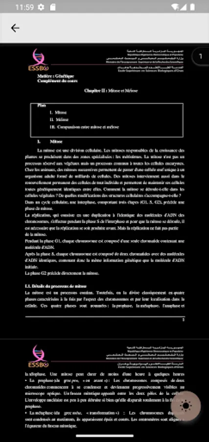 This educational application is a dynamic library containing courses and tutorials of the Genetics module according to the program of the Ecole Supérieure en Sciences Biologiques, which you can read **offline**