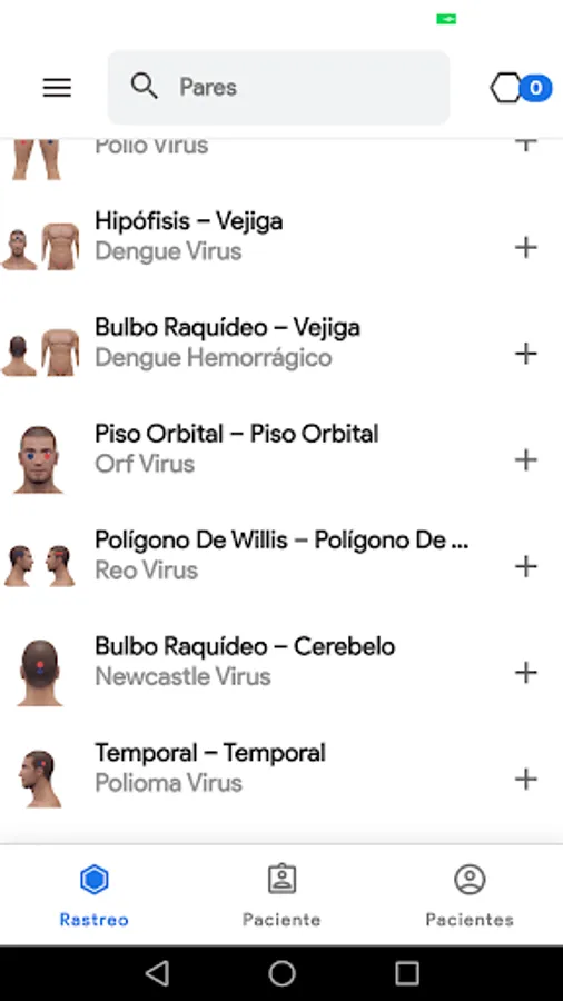 -Puedes buscar el nombre del par o el del virus/bacteria que desees encontrar