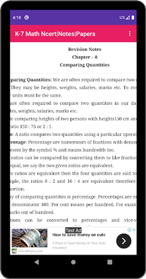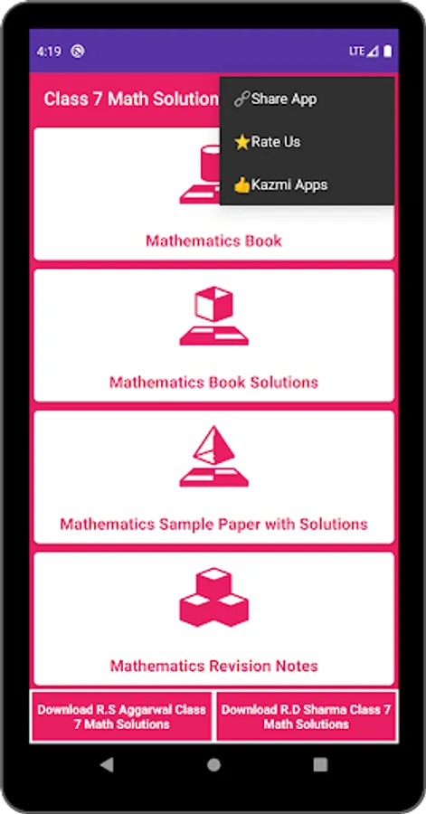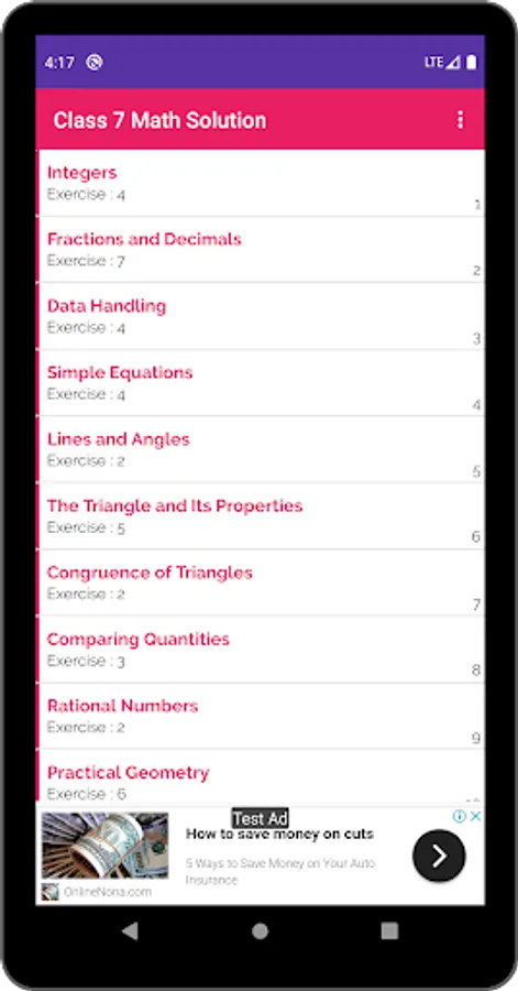 Content of App NCERT Class 7 Math Solution with Notes and Papers: