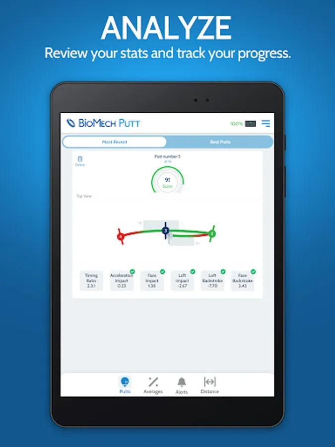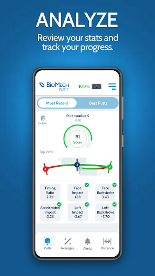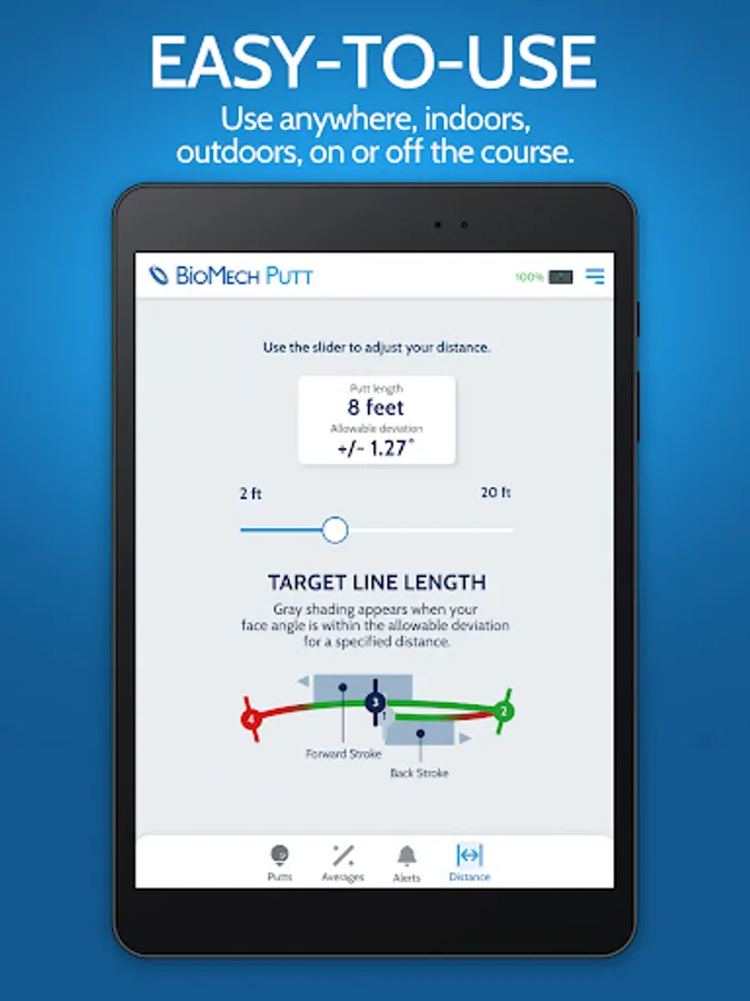 BioMech PUTT is the most powerful, scientific putting system in the world. Created by BioMech, leaders in health and performance motion science, PUTT instantly captures, quantifies and analyzes your putting stroke and streams relevant information and biofeedback instantly to your mobile device, adding insights and enjoyment to practice while subtracting strokes from your game. Any golfer, regardless of skill level, now has a mobile putting analysis system to measure, analyze and improve their score.