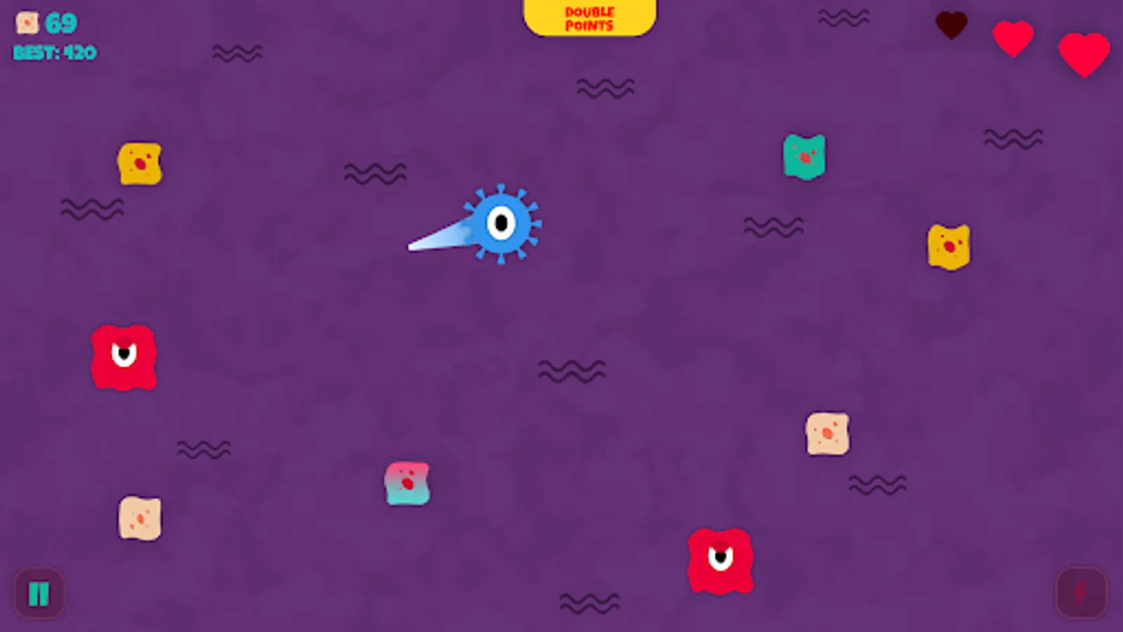 - UPGRADE: Collect DNA points, use power ups to boost your points, like IMMUNIUM or FROZIUM, collect special cells to get POINTS DOUBLING or angry enemy SLOWER