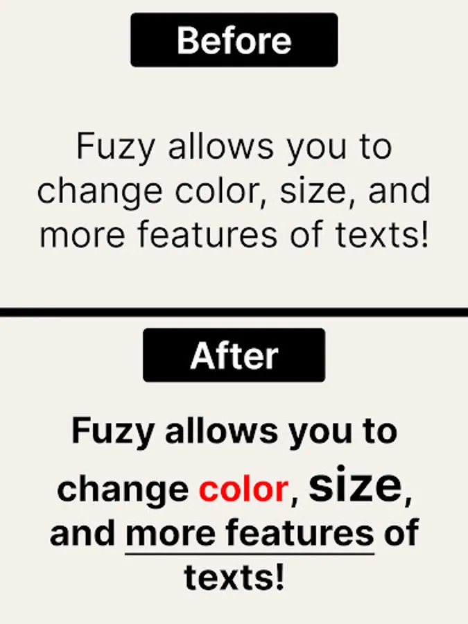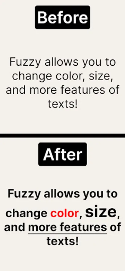 With Fuzzy, the amount of features of text you can customize is almost unlimited! You can customize: