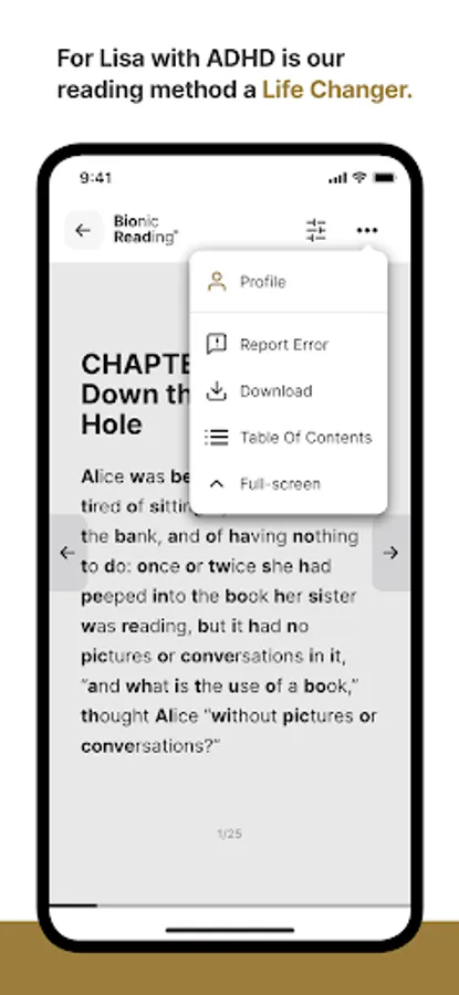 Lisa: “I have not read fiction for 20 years. I read what I have to read. It almost hurts my brain to read regular type. But now I will be reading fiction again! Bionic Reading® works for me and I can read 2–3 times faster! AMAZING! This is a LIFE CHANGER! Thank You!”