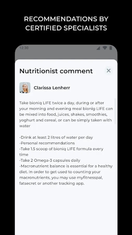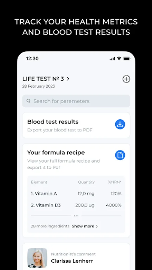 You can always access your individual formula recipe consisting of up to 53 parameters. Our unique algorithm creates it based on either the blood test or the questionnaire, depending on the product you chose.
