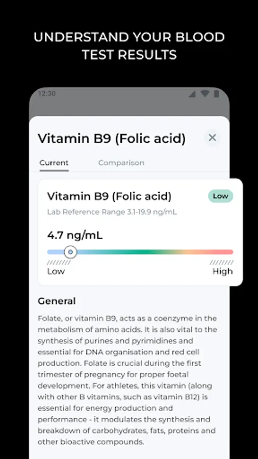 Iron levels too low or Magnesium levels too high? What does that mean for your wellbeing? Your personal dashboard provides clear information on the potential effects of blood parameters & your health status so that you understand where you fit.