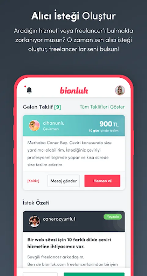 Bionluk; start-ups, especially with small budgets, companies that do not feel ready or need to build a full-time team to rent an office, or who do not need it, wholly or partly over the internet; It is a dynamic platform that brings together fast and talented freelancers, works with a global understanding of community, and thus includes the possibilities of establishing an international business network.