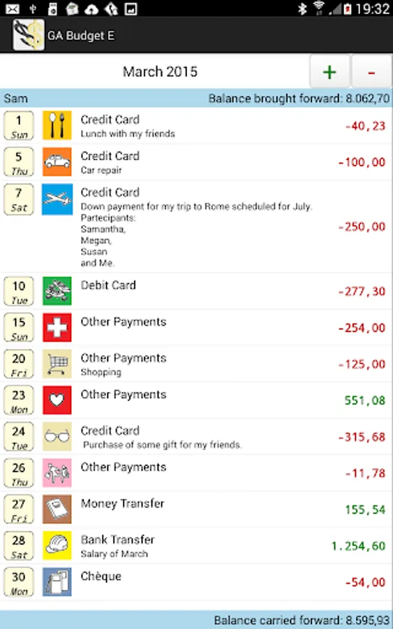 - Yuo can set date, amount, type of transaction, category and descriptions of all your transactions (expenses and incomes);