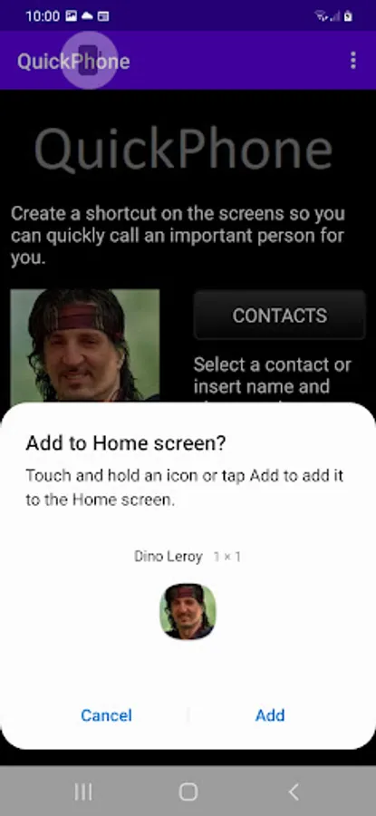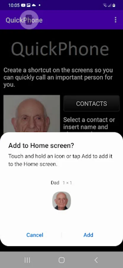 When you press on the icon, a call will immediately be initiated with that person. Designed for people who need to quickly call a contact. For example, it is useful for old people if they need to call a relative immediately.