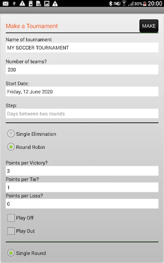 With this APP you can make several round-robin or single-elimination tournaments with no limit on the number of participants.