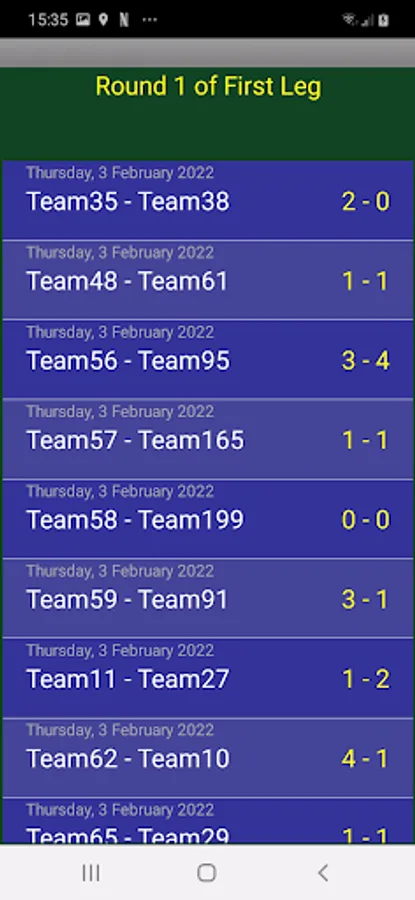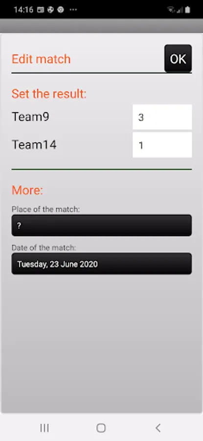 schedule: by clicking on a match you can quickly insert the result or other information such as the place of the match and date.