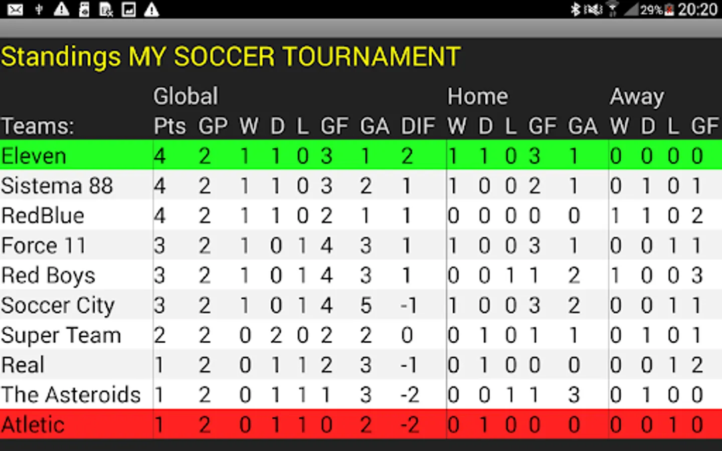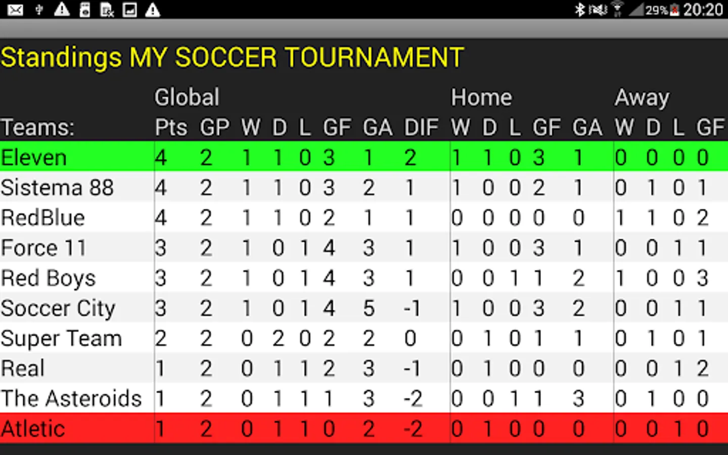 briefly tap on a tournament to access the following information: