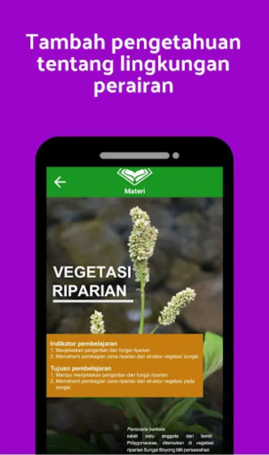 MATERIAL - the knowledge available about water pollution, riparian vegetation, and river biomonitorong helps you to add insight into the aquatic environment.