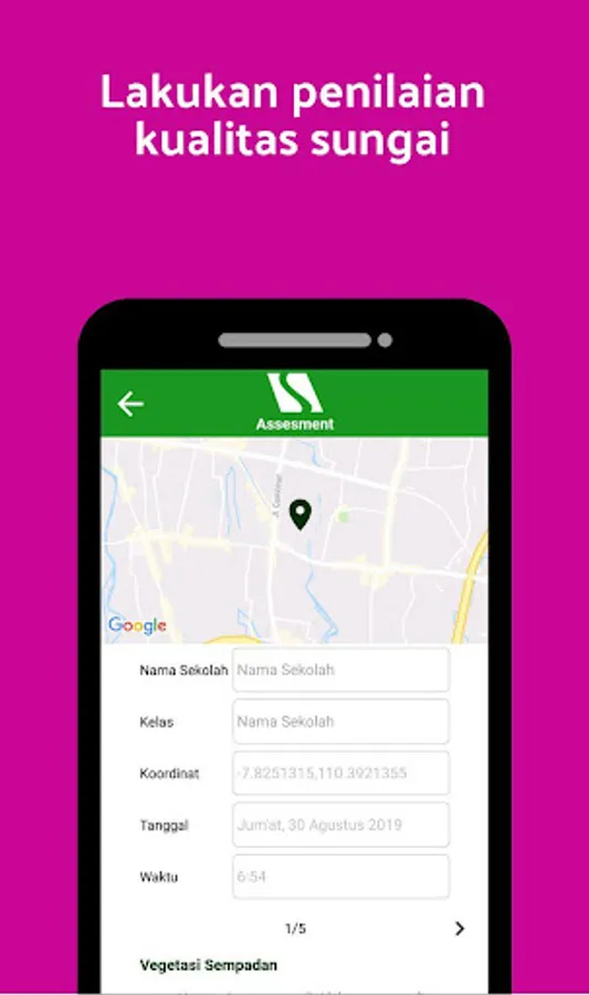ASSESSMENT - makes it easy for you to assess the biomonitoring of the river with the coordinates where you retrieve data, then you can save the data you take.